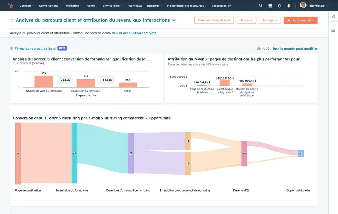 Le tableau de bord HubSpot vous donne une vue en temps réel du parcours client.